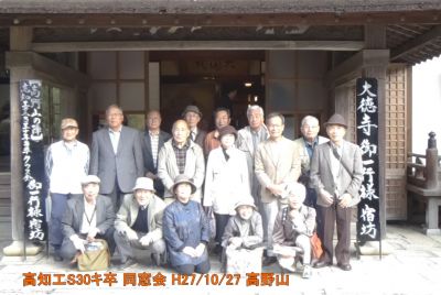 S30機械科卒の、H27年同窓会「高野山の陣」を行いました。PDF版の報告書をご覧ください。